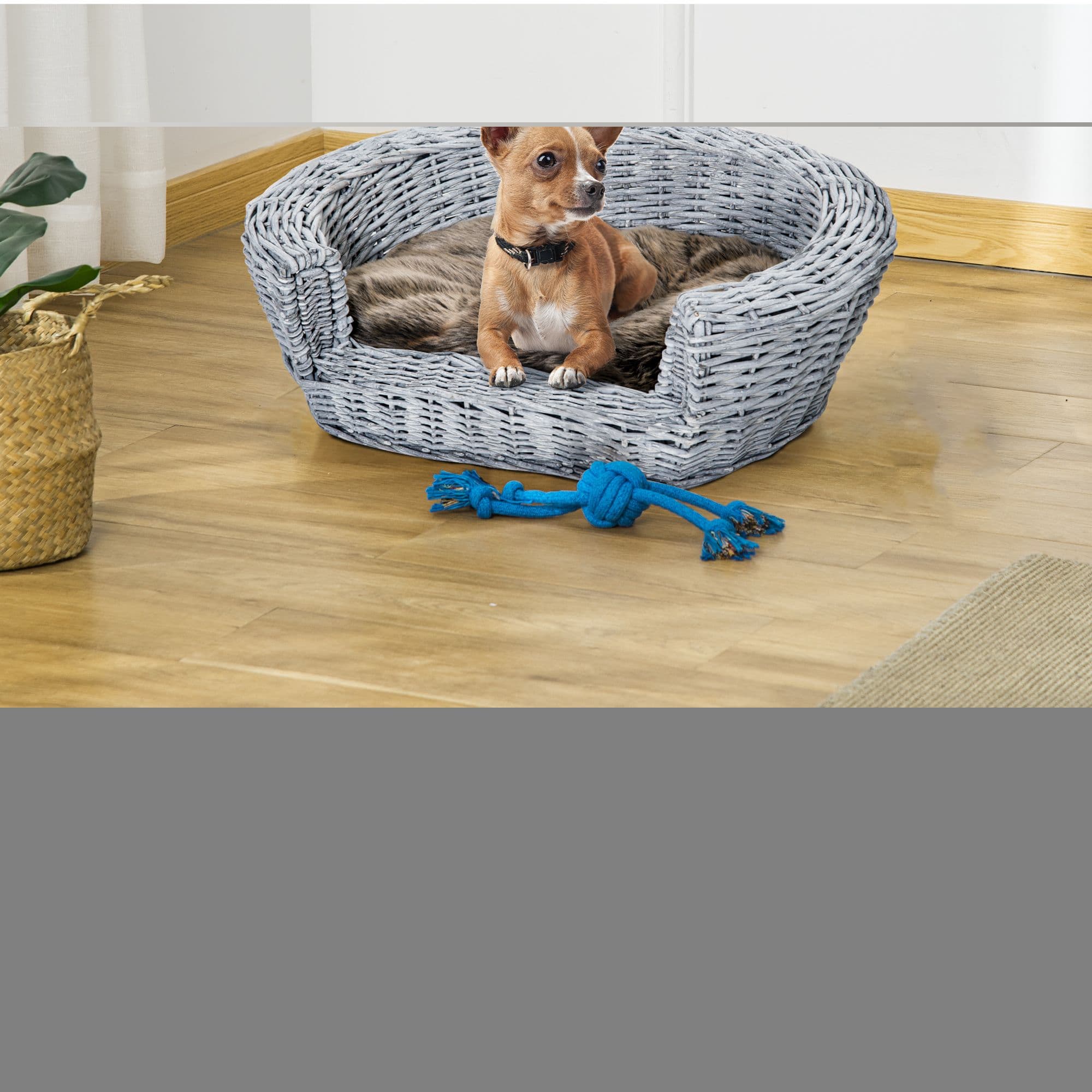 Elevated Dog Cat Couch Pet Basket Sofa Bed Wicker Willow Rattan Cushion Pawhut