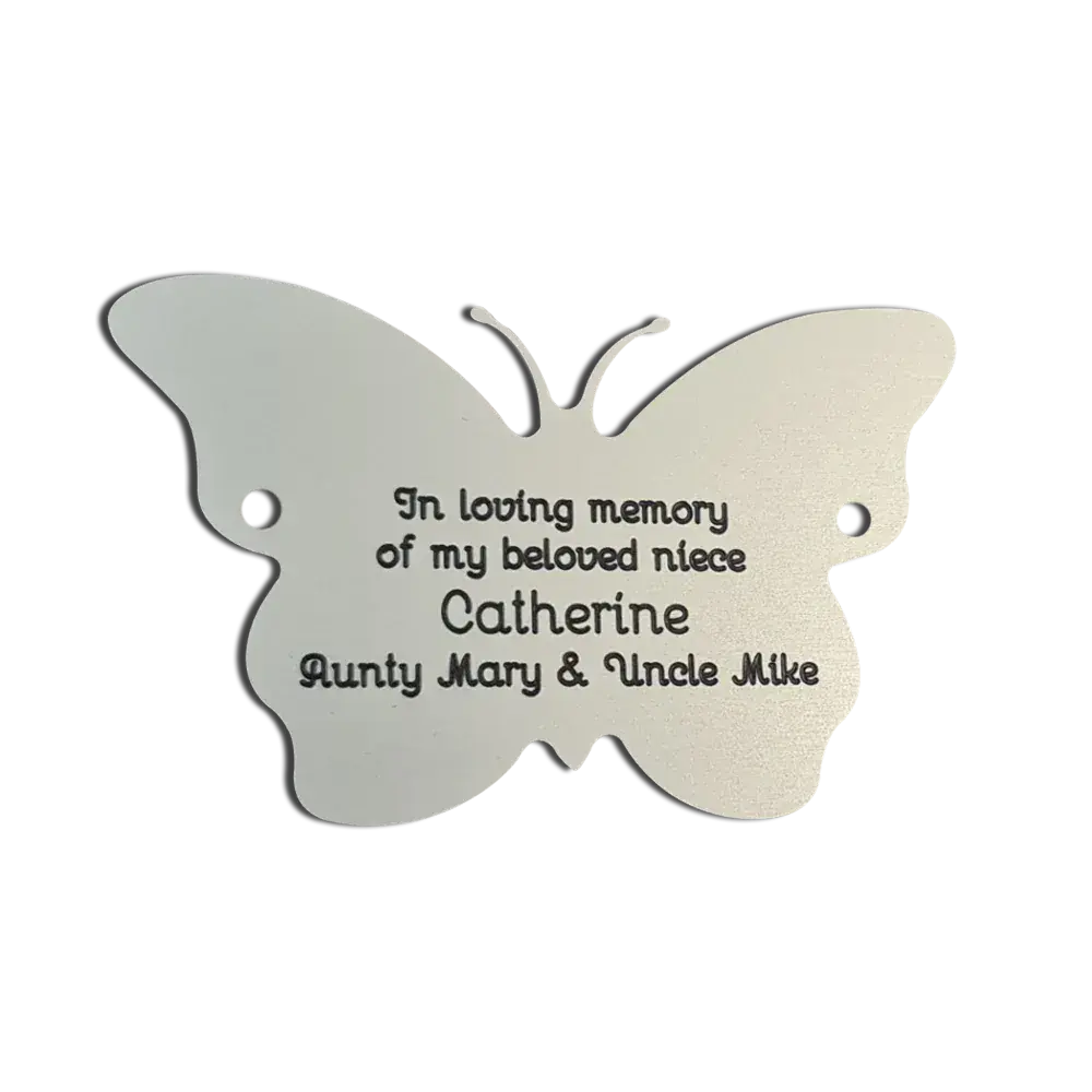 Engraved Silver Aluminium Butterfly plaque 2 Inch high